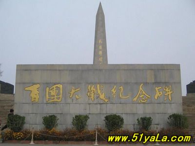 “百團大戰紀念碑”座北朝南,由主碑、三座副碑、一座大型圓雕、兩座題字碑、四個烽火臺和長 227米蜿蜒起伏的長城組成,于1987年6月30日建成。
