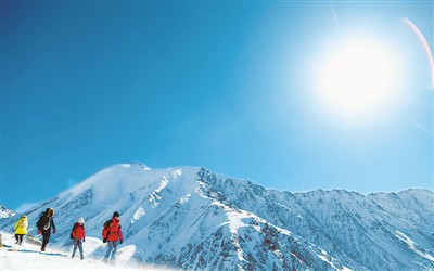 2018年1月1日,由青海省體育局、青海省體育總會主辦的2018新年登高健身大會青海分站在青海省海北藏族自治州門源回族自治縣崗什卡雪山舉行,超過2000名戶外登山愛好者以攀登雪山的方式迎接新年。賈海元 攝(新華社發)