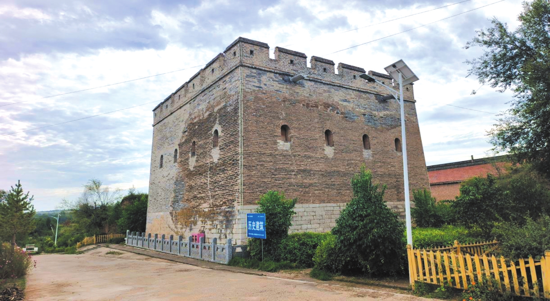 郭家河靖邊樓位于五寨縣東秀莊鄉郭家河村。據縣志考證,此樓建于明代萬歷年間,坐北朝南,平面呈正方形,邊長約16米,占地面積約259平方米。通高11米,頂部設垛口,內部形制為環形,磚砌拱券,四面布箭窗。靖邊樓南面正中為拱券石門,門額鑲嵌石匾,四周雕刻云勾紋,上刻楷書“靖邊樓”,下刻落款“山西路管轄太原……岢嵐營守部指揮趙恭”等字樣。靖邊樓堡墻長約1600米,基寬3至6米,殘高5至7米,夯層厚度10至15厘米。靖邊樓作為明代保境安民的邊塞防御體系,對明代中期邊防軍事部署研究具有重要作用,具有較高的歷史價值、藝術價值和科學價值。
