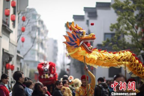 2015年農歷二月初二,民間舞龍隊在南京城南老街舞龍。泱波 攝