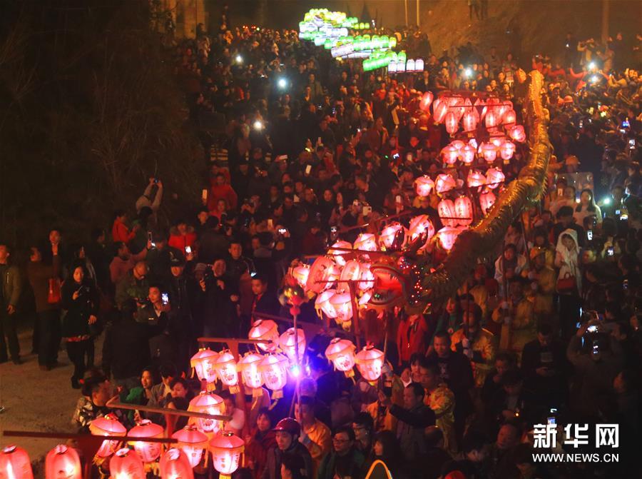 15日,湖南衡陽縣界牌鎮舉行火燈節民俗活動,居民們點亮火把、紅燭,彩燈等,走街串巷,祈求一年風調雨順、農業生產豐收、社會平安和諧。新華社發(曹正平 攝)