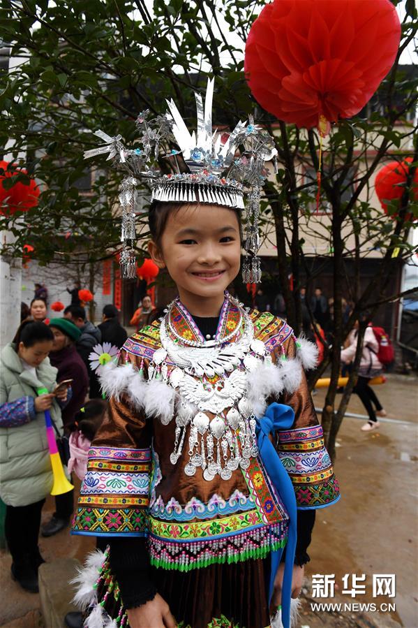 2月7日,廣西融水苗族自治縣安太鄉苗族群眾開展傳統的“打同年”民俗活動。當地數百名苗族同胞與游客們歡聚一堂,一起開展對歌、蘆笙踩堂、文藝晚會等活動,歡慶新春佳節。 “打同年”是融水苗族村寨的一種民俗,即友好村寨之間的拜年聯歡活動。新華社記者 李斌 攝