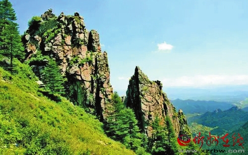 走到半山腰的一個懸崖處,一塊巨石突兀地橫在一條深達數百米的山溝上方。站在巨石上,無論抬頭還是四處遠望,陡峭險峻的高峰和沉靜雄偉的山脈,蜿蜒曲折,一直綿延數百里,那恢弘的氣勢,蔚為壯觀,動人心魄,令游客嘆為觀止。近觀一座座峰巒,或拔地而起,或峰巒疊嶂,或奇峰羅列,或怪石嶙峋,真是千奇百態,光怪陸離;遠眺一列列山脈,或千峰萬仞,或峭壁懸掛,鬼斧神工,萬般神奇,猶如進入夢幻仙境一般。