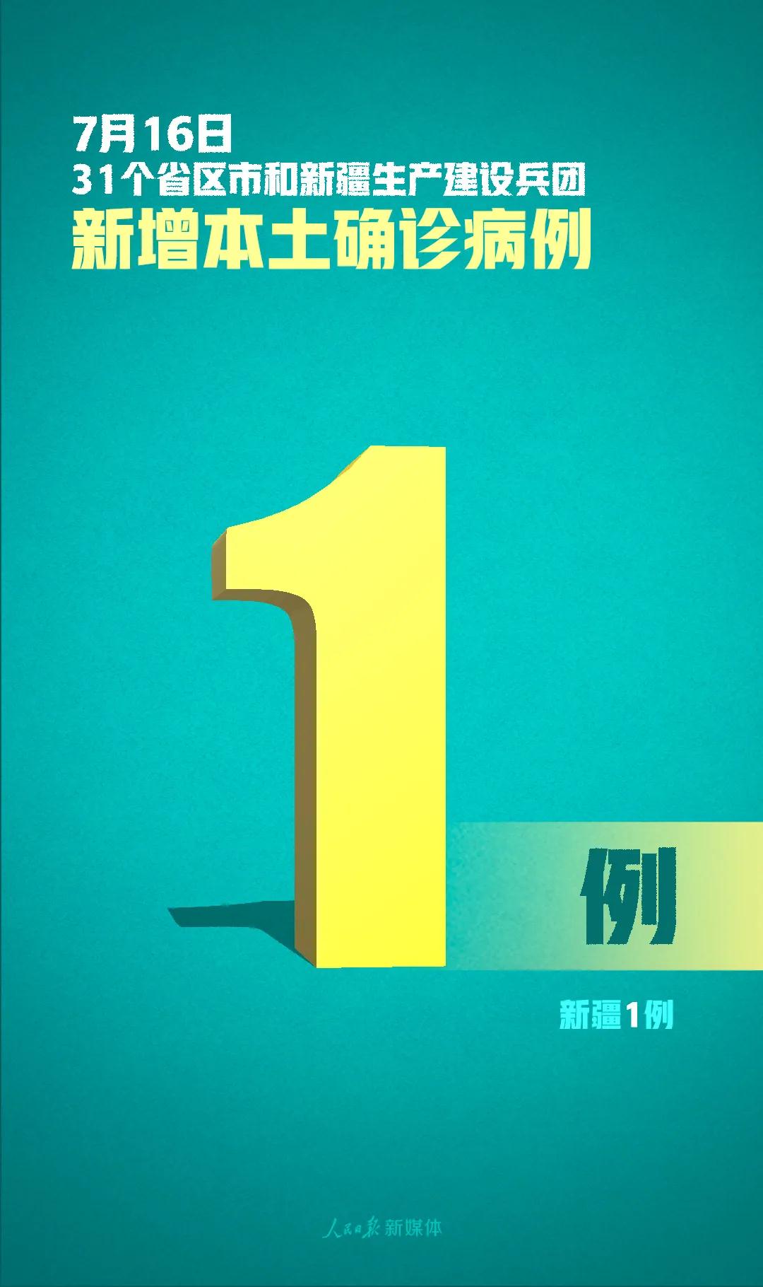 7月16日0—24時,31個省(自治區、直轄市)和新疆生產建設兵團報告新增確診病例10例,其中境外輸入病例9例(廣東4例,上海1例,江蘇1例,山東1例,廣西1例,陜西1例),本土病例1例(在新疆);無新增死亡病例;新增疑似病例1例,為境外輸入病例(在上海)。