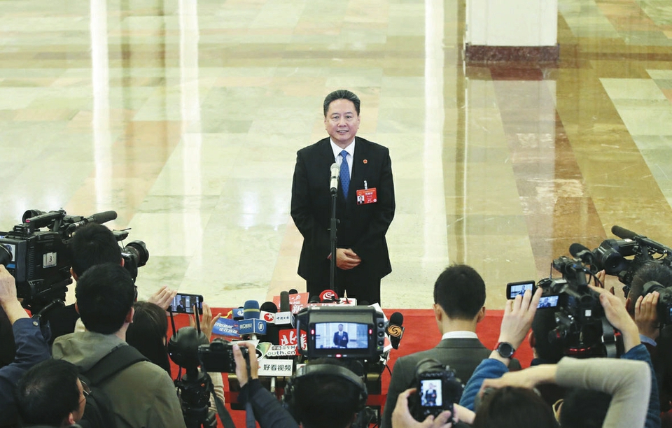 3月5日上午,十三屆全國人大二次會議開幕會結束后,第二場“部長通道”舉行。銀保監會主席郭樹清、商務部部長鐘山、交通運輸部部長李小鵬、工信部部長苗圩、海關總署署長倪岳峰、國家市場監管總局局長張茅、農業農村部部長韓長賦、國臺辦主任劉結一先后亮相,回應熱點問題。