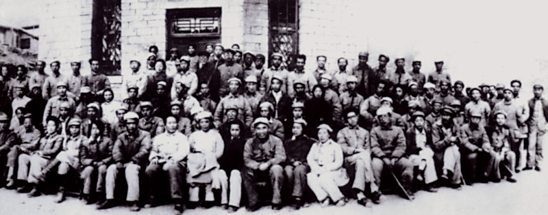 1942年5月2日至23日,在延安整風(fēng)期間,毛澤東同志親自主持召開了有文藝工作者、中央各部門負(fù)責(zé)人共100多人參加的延安文藝座談會(huì)。圖為延安文藝座談會(huì)代表合影(吳印咸/攝)。