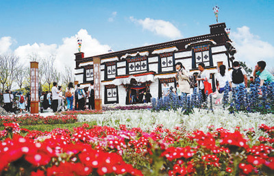 格桑花、瑪尼堆、五彩經幡、雪水溪流……一道獨特的雪域高原風景出現在北京世園會上。“我們以‘心靈家園·凈土西藏’為設計主題,展示了西藏地區居民生活的真實場景,更體現出西藏自然風光的無比壯麗。”西藏園設計師劉鴻飛說。