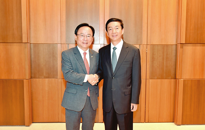 駱惠寧會晤韓國國會副議長李柱榮。 孫景凡 攝