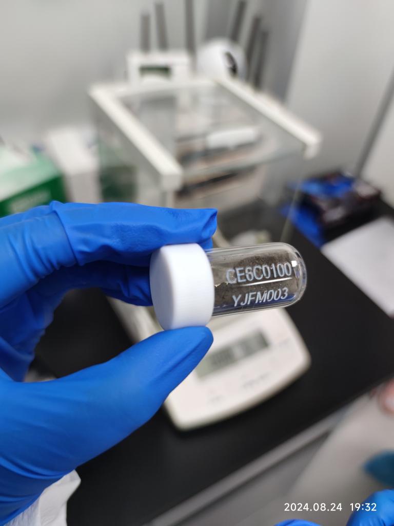 2024年8月24日,在中國科學院廣州地球化學研究所實驗室內拍攝的月壤樣品。(中國科學院廣州地球化學研究所供圖)