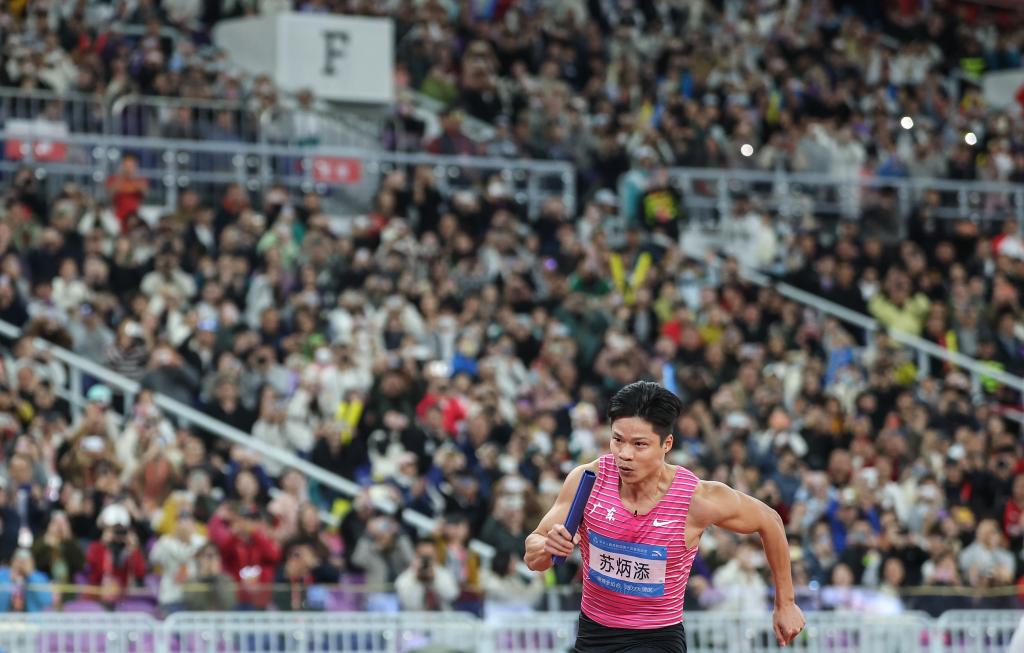 當日,田徑項目依然是金牌大戶,共產生12枚金牌。36歲的男子100米亞洲紀錄保持者蘇炳添成為全場焦點,他在家門口的賽道上跑完了職業生涯的最后100米,帶領一眾“00后”隊友為廣東隊奪得男子4×100米接力第四名。盡管未能幫助家鄉隊伍站上領獎臺,但蘇炳添仍贏得了滿場掌聲。