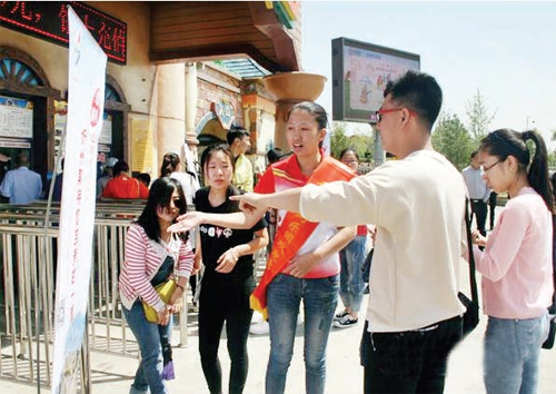 會后,工作人員在景區內張貼了忻州申辦“2016年山西省旅游發展大會”投票海報,并為游客講解活動內容及投票方法,倡導人人助力、人人投票。圖為工作人員為游客講解投票事宜(忻仁)