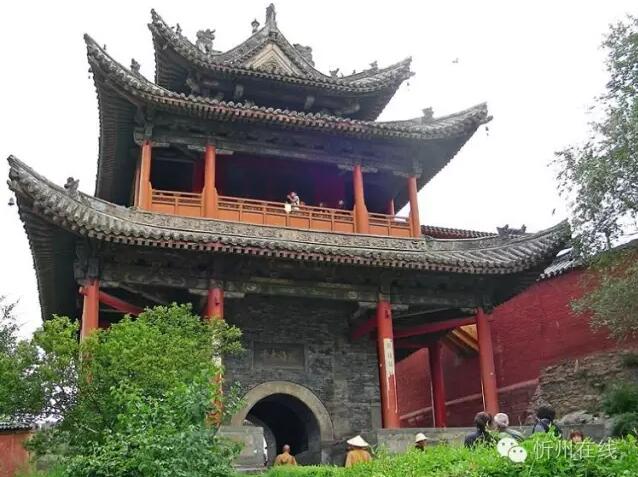 入顯通寺前,首先出現在眼前的是一座下層為石券洞,上兩層為木構建筑的高大鐘樓,石洞的門楣上,刻有四個遒勁的大字:“震悟大千”。顧名思義,是說渾厚悠長的鐘聲,能把大千世界震得醒悟過來。