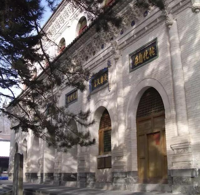 無量殿是一座磚砌結(jié)構(gòu)建筑。相傳,唐代清涼國師澄觀于唐德宗建中四年在此殿內(nèi)著述《華嚴(yán)疏抄》,寫作達(dá)四年之久。殿內(nèi)供毗盧佛大銅像,取佛法無量之意,稱為“無量殿”。又因殿內(nèi)沒有梁柱,有人也叫“無梁殿”。這座殿分上下兩層,也是明七暗三,面寬28.2米,進深16米,高20.3米,重檐歇山頂,磚券而成,三個連續(xù)拱并列,左右山墻成為拱腳,各間之間依靠開拱門聯(lián)系,型制奇特,雕刻精湛,宏偉壯觀,是我國古代磚石建筑藝術(shù)的杰作。無量殿正面每層有七個閣洞,閣洞上嵌有磚雕匾額,有的題“普光明殿”,有的題“法菩提場”等等。顯通寺無量殿東側(cè)的明代16級木質(zhì)高塔。意喻釋迦牟尼佛“七處九會”,即釋迦牟尼在七處地方九次講《華嚴(yán)經(jīng)》。因此,無量殿又稱七處九會殿。