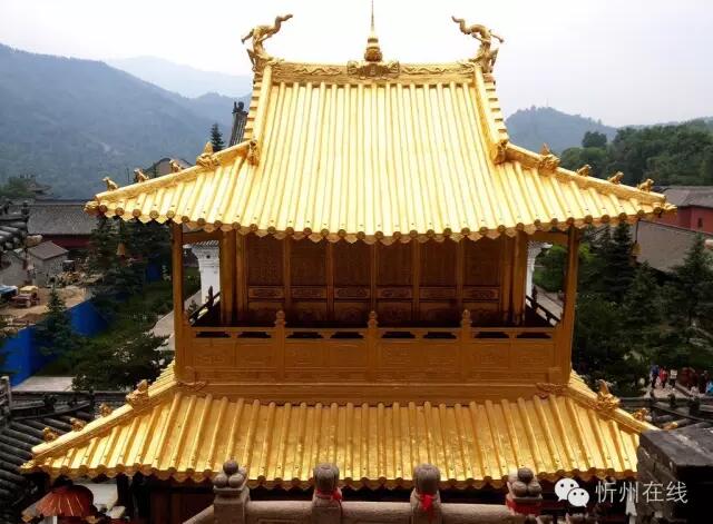 出千缽殿,拾階而上,就到了銅殿和銅塔前。銅殿是一座青銅建筑物,鑄造于明萬歷三十四年(1606)。據《清涼山志》記載,銅殿是五臺山高僧妙峰于明朝萬歷年間,集全國13省布施,用10萬斤銅鑄成。妙峰大師曾鑄三座銅殿,一座在南京,一座在峨眉山,一座在五臺山,規格樣式一樣。前二者已失,顯通寺的這座是國內僅存的。銅殿前下方左右兩側,各矗立著一座銅塔,于明萬歷三十五年(1607年)鑄成。這里原有五座銅塔,隱含五座臺頂,可惜有三座被日軍侵華時盜走。