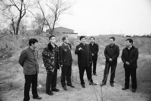 溫建軍市長(左四)帶領相關部門負責人現場辦公。