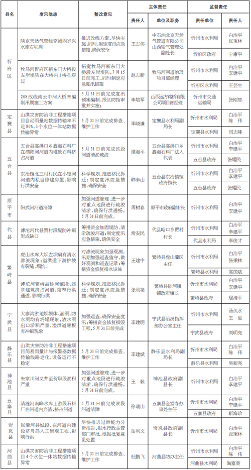 忻州市2016年度汛隱患檢查通報表