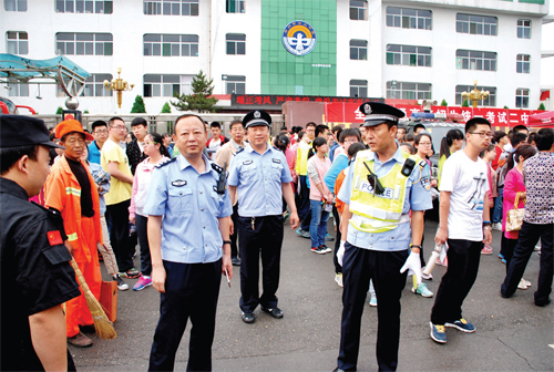 市公安局副局長、交警支隊長袁小波在高考現場指揮調度