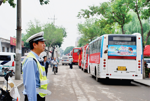 考試期間,城區所有交通事故接處警工作將由事故處理大隊負責,派出一輛清障車、兩輛事故勘測車南北雙向巡邏,及時接警、就近出警,快速處理事故,清理現場路障,保障道路暢通。