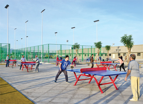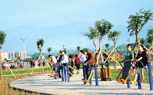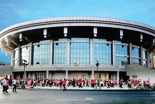 6月13日清晨,代縣成百上千的市民在新建的新城體育中心休閑鍛煉。有的散步,有的玩健身器械,有的打乒乓球、羽毛球,有的跳廣場舞,各取所需,其樂融融。