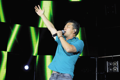 音樂聲再次響起,舞臺漸漸暗了,體育場上泛起點點“星光”,那是觀眾們手機發(fā)出的光,隨著手臂揮動,宛如泛起的陣陣波浪。《一起長大》是一首較為舒緩的歌,講述的正是秦勇多年來陪伴患有感統(tǒng)失調(diào)癥的兒子成長的故事。秦勇將這首歌作為最好的祝愿,送給忻州所有家庭。