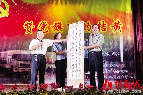 本報訊 7月3日晚8時,忻府區文聯、忻府區作家協會和遺山詩社在忻州市住建局禮堂共同舉辦了一場大型詩歌吟誦演唱會,用詩的語言、歌的韻律抒發了對黨的祝福和對環衛工人的贊美。7月1日是黨的生日,在此之際,他們用詩歌表達對黨的熱愛,也表達對在黨旗下默默付出的勞動者們的敬意。