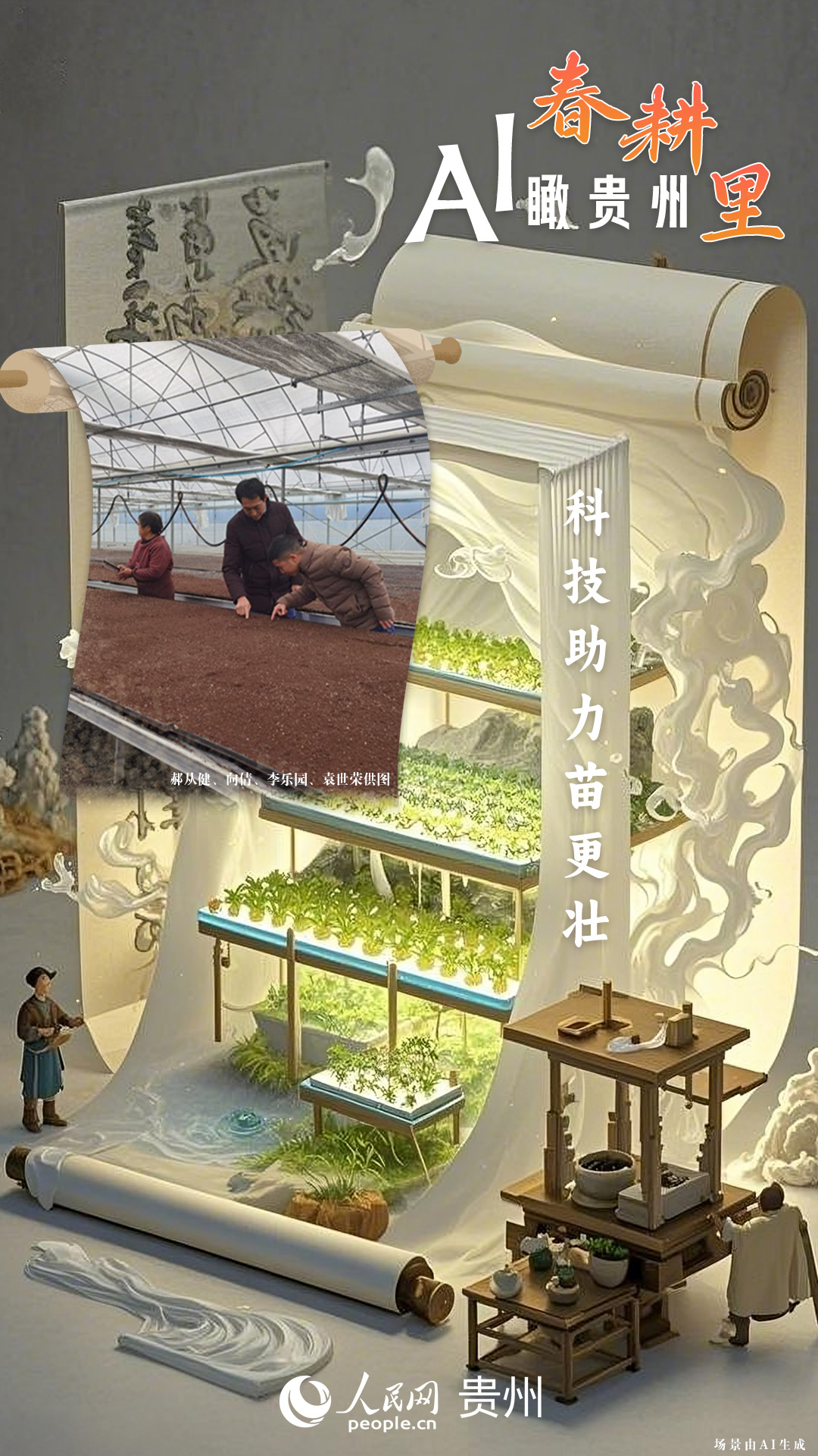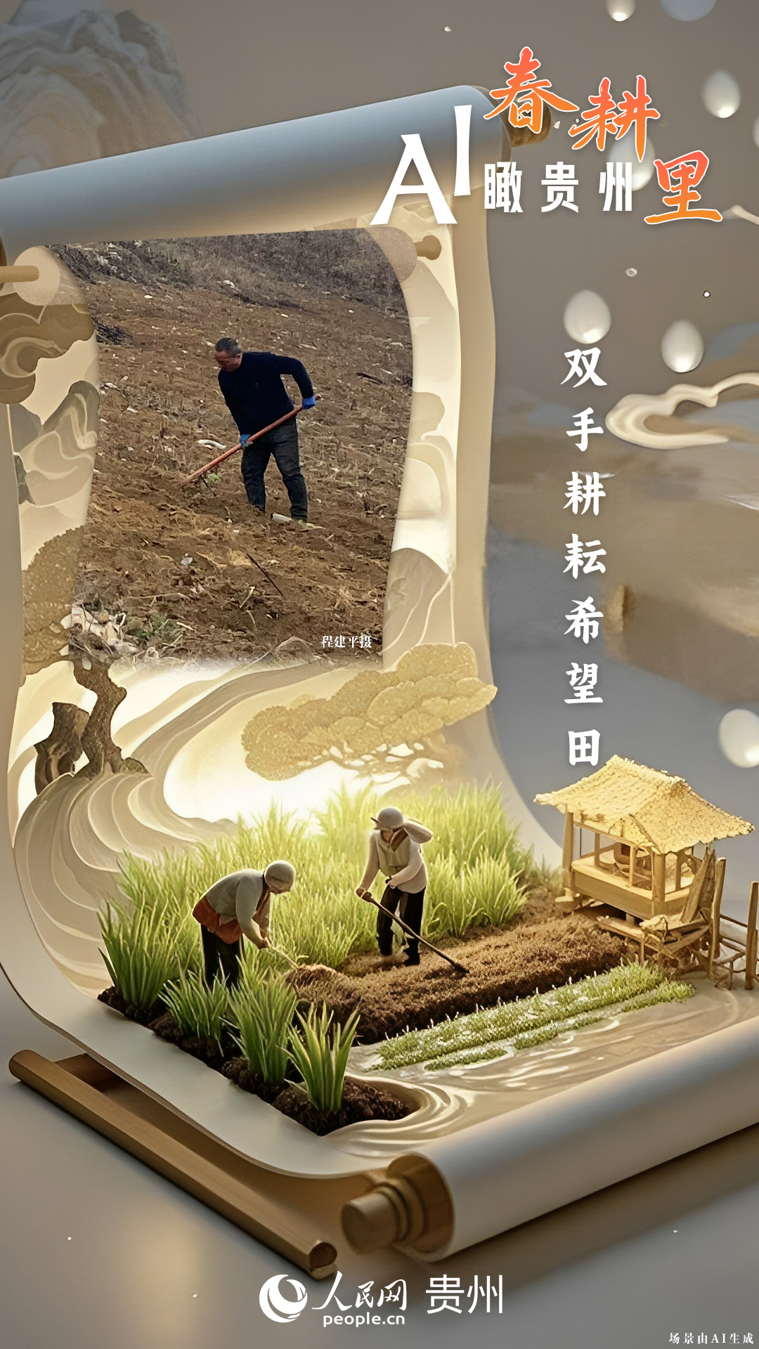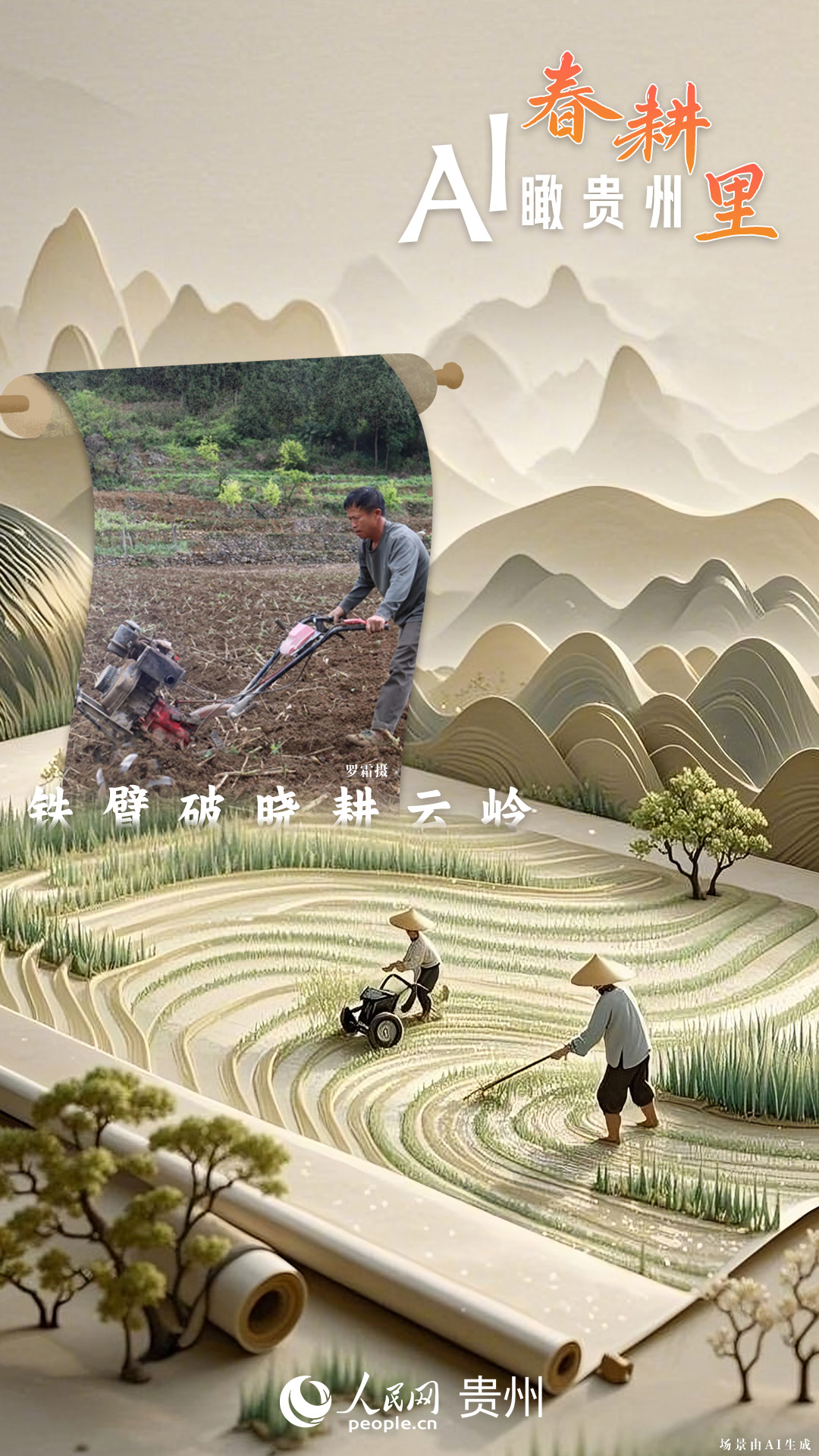春回大地,萬物復蘇,黔地山川間正上演著一場生機勃勃的春耕盛景。傳統農耕與現代科技在這里交織,描繪出一幅幅充滿希望的畫卷。 春耕不僅是農時的序曲,更是科技與土地對話的現場。在貴州這片喀斯特地貌與民族文化交織的土地上,春耕正經歷一場靜默的變革:無人機掠過千年梯田,算法解析紅壤墑情,覆膜機織就“智能外衣”,而彎腰勞作的農人,依然用繭手傳遞著古老農耕文明的溫度。 本期跟隨AI一起描繪貴州春耕里的故事。