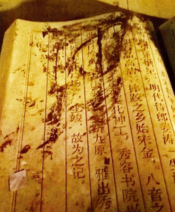 圖為在城區北城門樓廣場,寫著忻州志的大石頭上,發現一大片黑色污漬,仔細辨別是被墨汁污染了。作為文明城市的市民,應該愛護城市的榮譽,保護城市公共設施,而不應在公共建筑物上亂涂亂畫,請相關部門盡快清除污漬,還大石清白。一網友攝