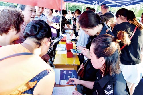 活動中,內保支隊民警向群眾詳細講解了平臺的便民功能、注冊步驟及領取小禮品流程,積極倡導廣大市民主動關注、注冊、應用平臺。期間,宣傳民警共發放宣傳資料500余份,現場關注、注冊230人,取得了良好的社會效果。圖為市民在現場掃碼(記者 徐國華)