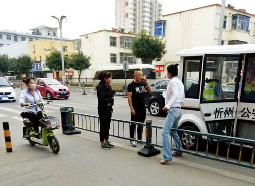 在城區體育廣場人行橫道上,交警對不禮讓行人的車輛進行處罰,受到市民關注和贊同。