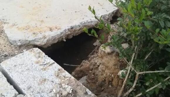 新修慕山南路樊野村西北人行道(路燈050號桿右側)因下雨出現了路基進水,雨水沖出大洞形響道路安全,希望施工單位及時處理,避免不安全隱患擴大。