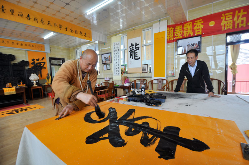 29日,中國佛教講經交流會在五臺山召開之際,記者走訪了東臺頂望海寺釋覺一法師,他在勤修佛法的同時在書畫藝術上也自成一家。他認為,佛法與書畫關系密切相通之處,學習佛法可促進書法境界的提升,有助于佛法的弘揚。
