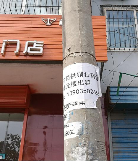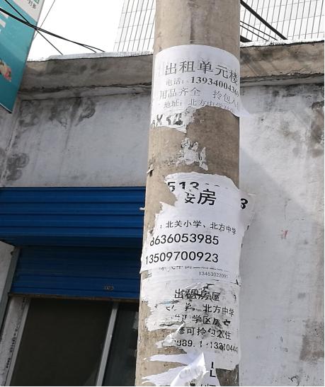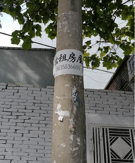 健康街南巷九龍苑小區附近電線桿出租房小廣告(吳瓊 攝)