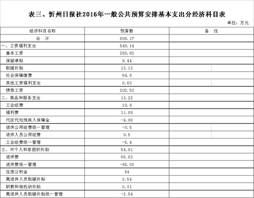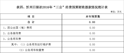 忻州日報社2016年度部門預算及“三公”經費預算公開情況