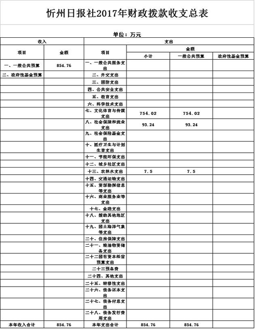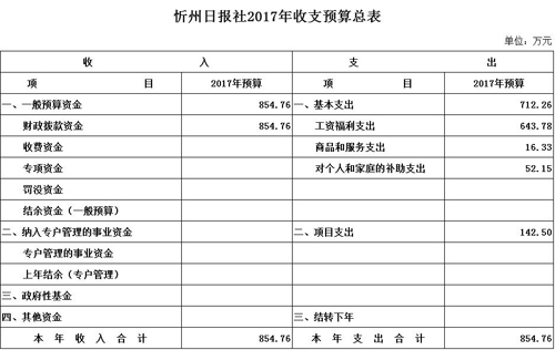 忻州日報社2017年度部門預算及“三公”經費預算公開情況