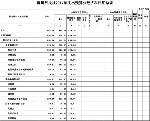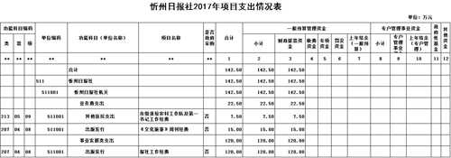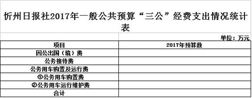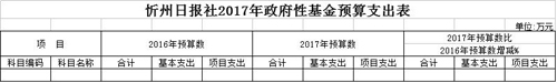 忻州日報社2017年度部門預算及“三公”經費預算公開情況