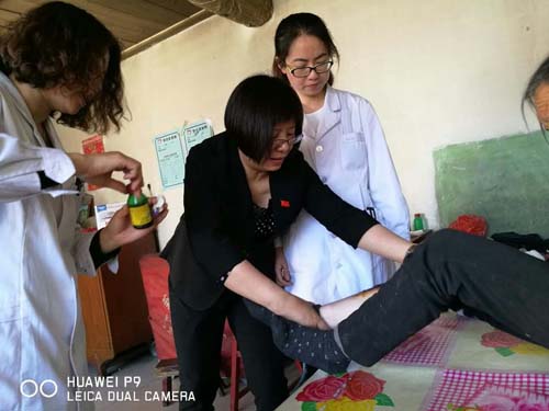 5月16日,忻州市衛計委副主任楊春枝帶著黨支部部分黨員和忻州市中醫院的醫護人員再次趕赴到扶貧點寧武縣涔山鄉漚泥灣村,一進村她(他)們連口水也沒有來得及喝,就安排中醫院醫護人員給村民們進行體檢,楊主任和支部黨員就組織村委在村的6名黨員干部召開維護核心見諸行動專題黨課,她(他)們共同重溫黨章,面對黨旗舉手宣誓,楊主任親自上臺主講了一堂生動的黨課。隨后,她(他)們再次看望了貧困戶,在幫扶聯系貧困戶張存花家中,楊春枝主任從包里掏出自費購買的膏藥,并親手扶起衣服給老人貼在患處。“你們大老遠的每次都來看望我,上次我說腰疼,這次就給我帶來了膏藥,還親手給我貼上,不知道該怎樣感謝呀,這閨女就是比親閨女都親……”寧武縣涔山鄉漚泥灣村80歲的殘疾貧困戶張存花緊緊拉著扶貧干部忻州市衛計委副主任楊春枝的手,激動地久久不肯松開。(郝法林 米永平)