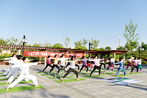 5月31日,“傳愛伽人·環騎三晉”山西省首屆瑜伽達人賽助力騎行者王旭方,騎單車抵達忻州市DJ禪意瑜伽會館。王旭方與瑜伽愛好者們進行了面對面的技藝交流。6月1日早晨,DJ禪意瑜伽會館又在云中河公園舉辦了一次別開生面的戶外瑜伽分享課,場景吸引了眾多在公園晨練的群眾駐足觀看。