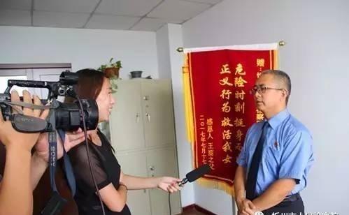 2017年3月10日中午14時左右,忻州市通崗路民心家園附近發生一起惡性持械傷人事件,犯罪嫌疑人陳某與受害人王某因感情糾紛引發矛盾。市檢察院公訴二處干警閆建斌正好上班路過此處,面對正在行兇的歹徒,毫不畏懼,大聲喝止,歹徒聞聲放開正受攻擊的受傷女子,扔掉兇器,倉惶駕車逃離現場,后被公安民警在高平抓獲。閆建斌記下兇手所駕駛車輛牌號,并立即撥打110報警,隨后將現場保護起來,等待110、120的到來。由于閆建斌的見義勇為,使受害女子得以脫離魔爪,得到及時救治。7月17日,受害女子的父母把一面寫著“危險時刻挺身而出,正義行為救活我女”的錦旗送到市檢察院,感謝閆建斌在危難時刻的責任和擔當。其父緊緊拉著小閆的手不放:“多虧你敢于出手相救,才阻止了進一步犯罪,救了我姑娘,當前社會就需要這樣的正能量呀!” (程玉光)
