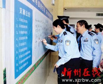 本報訊 為進一步提升廣大民警、輔警創建文明城市的意識,近日忻府區公安局組織開展了以“倡導綠色生活、反對鋪張浪費、爭創文明城市”為主題的簽名承諾活動,局領導和全局民警、輔警參加了活動,鄭重地在簽名墻簽上姓名,紛紛表示要以此次活動為契機,從自身做起,將社會主義核心價值觀融入日常工作中,自覺踐行文明公約,積極參加志愿者活動,爭當創建文明城市的先鋒,積極為創建文明城市貢獻力量。