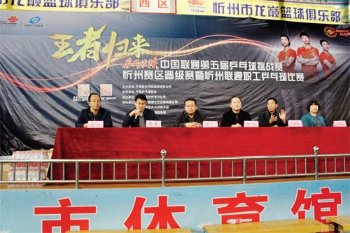 中國聯通乒乓球挑戰賽前期已成功舉辦四屆,全國共有72000 人參加。今年的賽事以“乒乓在沃,王者歸來”為活動主題,攜手國乒傾情回饋熱愛運動的廣大聯通用戶,為聯通客戶提供與國手親密互動的專享契機。本屆比賽得到了中國乒乓球協會的大力支持,由中國聯合網絡通信有限公司山西省分公司主辦,中國聯合網絡通信有限公司忻州市分公司承辦,北京中廣賽博文化發展有限公司協辦。