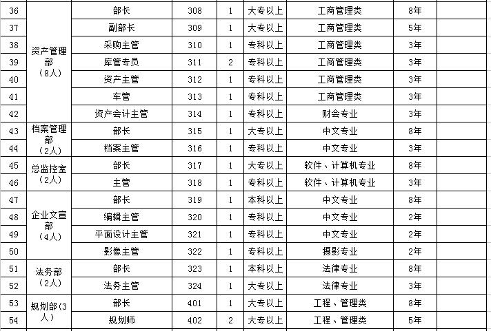 忻州涌盈環境建設有限公司是市政府成立的以特色現代農業、高標準農田建設、土地整治、固廢整治為主要業務的專業公司。地址位于忻州經濟開發區,注冊資金一億元。根據公司發展需要,現向社會招聘部分管理人員和專業技術人員。 一、招聘范圍 全市范圍內的有實踐工作經驗的畢業生、企業管理人員、工程技術人員。 二、應聘條件 1、年齡24歲--45歲(1973年—1994年),男女不限。 2、大專以上文化程度,專業包括漢語言文學、經濟管理、法律、財會、農學類、林業類、水利類,計算機類、規劃設計、測繪、工程管理、建筑類。 3、畢業生須具備兩年以上實際工作經歷。 4、三支一扶人員(支教、支醫、支農、扶貧)。 三、應聘事項 應聘時段:2018年11月1日--11月7日, 上午8:00-12:00 , 下午14:00-18:00 應聘地點:忻州經濟開發區紫檀商務酒店六層會議室 應聘需攜帶材料: (1)報名登記表(填寫完成); (2)本人有效身份證原件及復印件; (3)學歷證書、學位證書、專業技術資格證書、執(職)業資格證書等相關執照(證明)原件及復印件,三支一扶人員需《高校畢業生到農村基層服務證書》; (4)本人近期同底版1寸免冠紅底彩照2張。 應聘人員須對本人的報名資格及所提供材料的真實性負責。凡弄虛作假的,一經查實即取消聘用資格。 資格審查合格者通知參加面試。 四、面試流程 面試按照報考崗位分財會、工程、項目管理、人事行政四個專業組,分初試、復試階梯式選拔確定擬錄用人員。初試通過了解實際工作經歷考查其表達能力、理解能力和工作能力,選拔入圍復試人員。復試進一步考查其管理經歷及其業績,選拔適合中層以上管理人選,適合擔任更高職務的,推薦上級部門進一步面試考察。 初次面試由各部門負責人和人力資源部共同面試,入圍復試人員由分管副總和總經理面試。擬任總監以上人員報太原公司面試。 面試流程:資料提交 資料審核 首輪面試 復試 注:財務人員資格審查合格全部推薦上級財務部門領導面試并確定錄用。 五、考察與體檢 招聘辦公室組織對擬擔任職務和特殊崗位人員進行考察,考察結果報領導組組長。 面試確定的所有擬錄用人員發給體檢通知書。在指定醫院根據約定項目自行體檢,體檢表在三日內交回。 六、錄取方式 1、根據面試、相關考察及體檢結果由招聘工作領導組統一確定錄用及任職。 2、根據實際需要分批通知入職。 3、入職人員先參加統一組織的入職培訓,培訓合格者上崗。 七、薪資福利 1、基層工作人員月薪3000元—7000元,部門負責人以上面議(含基本工資、崗位工資、績效工資、司齡工資)+五險一金 2、福利(含通訊補貼、生日禮物等) 九、聯系方式公司地址:山西省忻州經濟開發區新建北路戴斯酒店四層 咨詢電話:0350-3163335 0350-3163883 0350-3163885 二〇一八年十月三十日