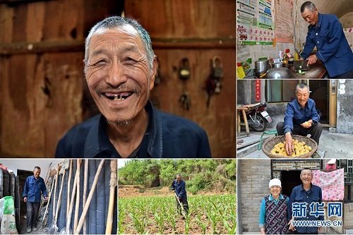 李增福,男,1949年出生,山西省長治市潞城區(qū)上黃村人,自己和老伴都患有較嚴重的慢性病,家里6口人靠種植6畝玉米地為生,生活貧困。2016年女兒和女婿參加了村里組織的脫貧技能培訓(xùn)并開了一家特色面食店,家里的日子逐漸好了起來。 左上:李增福肖像;右上:李增福在切菜;右中:李增福在晾曬剛摘的杏;右下:李增福和老伴合影;下中:李增福在田地里鋤草;下左:李增福在挑選農(nóng)具(拼版照片,6月11日攝)。 地處晉東南的山西省長治市,位于由太行山、太岳山環(huán)繞而成的上黨盆地中。在群山中、崖壁上,許多村莊自然條件惡劣,基礎(chǔ)設(shè)施落后,脫貧致富是大山深處人們的迫切心愿。 近年來,一場場脫貧攻堅戰(zhàn),在一個個深山村打響。政府全力探索脫貧路徑的同時,山區(qū)百姓因地制宜,靠自己的雙手和智慧走上致富路,交出了一份扎實的脫貧答卷。 記者在太行山、太岳山一路尋訪,記錄下多位70歲老人的生活。這些共和國的同齡人,親歷了山鄉(xiāng)的巨變,見證著長治山區(qū)脫貧攻堅偉大工程的一步步推進。 新華社記者 曹陽 攝