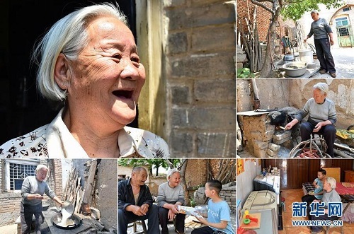田何英,女,1949年出生,山西省長治市潞城區上黃村人,全家人靠種植5畝糧食地過日子,家人的重病使其陷入貧困。2015年開始,田何英和家人享受種植產業補貼和金融扶貧補貼,孫子上學享受“雨露計劃”補貼。2017年,田何英家脫了貧。 左上:田何英肖像;右上:田何英在院子里;右中:田何英在生火做飯;右下:田何英和孫子一起看電視;下中:田何英(中)和家人在院子里;下左:田何英在做飯(拼版照片,6月11日攝)。 地處晉東南的山西省長治市,位于由太行山、太岳山環繞而成的上黨盆地中。在群山中、崖壁上,許多村莊自然條件惡劣,基礎設施落后,脫貧致富是大山深處人們的迫切心愿。 近年來,一場場脫貧攻堅戰,在一個個深山村打響。政府全力探索脫貧路徑的同時,山區百姓因地制宜,靠自己的雙手和智慧走上致富路,交出了一份扎實的脫貧答卷。 記者在太行山、太岳山一路尋訪,記錄下多位70歲老人的生活。這些共和國的同齡人,親歷了山鄉的巨變,見證著長治山區脫貧攻堅偉大工程的一步步推進。 新華社記者 曹陽 攝