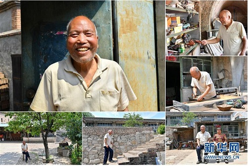 韓忠岐,男,1949年出生,山西省長治市潞城區垂陽村人,1976年起擔任村干部。從小熱愛學習的韓忠岐對鄉村發展有自己獨特的想法,他鼓勵村民們學習技能,在農閑時“組團”外出打工,農忙時鄰里互幫互助,曾經貧窮的垂陽村在他的帶領下慢慢富裕起來。退休后,閑不下來的韓忠岐自學打鐵、電焊技能,現在成了鄉里小有名氣的鐵匠,經常為貧困戶開展技術培訓。 左上:韓忠岐肖像;右上:韓忠岐在挑選工具;右中:韓忠岐在制作一個鐵皮抽屜;右下:韓忠岐和老伴坐在院子里;下中:韓忠岐去鄰居家串門;下左:韓忠岐在院子里乘涼(拼版照片,6月18日攝)。 地處晉東南的山西省長治市,位于由太行山、太岳山環繞而成的上黨盆地中。在群山中、崖壁上,許多村莊自然條件惡劣,基礎設施落后,脫貧致富是大山深處人們的迫切心愿。 近年來,一場場脫貧攻堅戰,在一個個深山村打響。政府全力探索脫貧路徑的同時,山區百姓因地制宜,靠自己的雙手和智慧走上致富路,交出了一份扎實的脫貧答卷。 記者在太行山、太岳山一路尋訪,記錄下多位70歲老人的生活。這些共和國的同齡人,親歷了山鄉的巨變,見證著長治山區脫貧攻堅偉大工程的一步步推進。 新華社記者 曹陽 攝 |