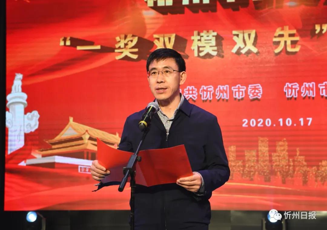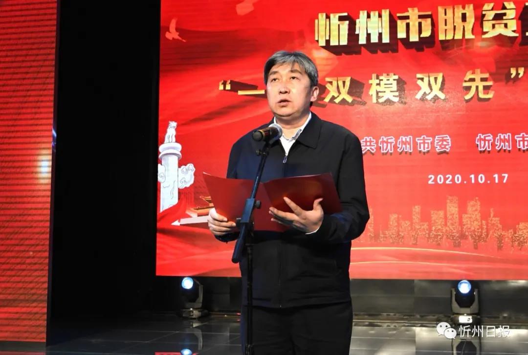 秦書義宣讀《中共忻州市委忻州市人民政府〈關于表彰2020年忻州市脫貧攻堅“一獎雙模雙先”的決定〉》。劉紀森