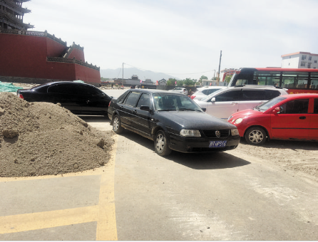 本報訊 6月2日,記者在北城門樓西北角看到,車輛停放混亂無序,有的甚至停放在通行的馬路上。而馬路中央堆放著一堆施工用沙,整個環境看上去不和諧。