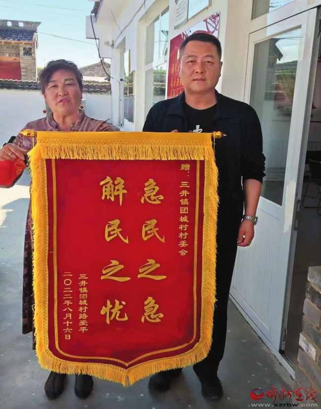 村民路愛平介紹說,去年8月9日,岢嵐縣遭遇到了幾十年不遇的特大暴雨侵襲,凌晨4點多,外出辦事的甄繼榮趕回村里,召集村兩委班子成員連夜巡查村民房屋是否有安全隱患,巡查到早上7點時,發現靠近河道居住的路愛平和吳貴生兩戶村民的護坡有被洪水沖刷的痕跡,存在安全隱患,當時還在下著大雨,村里也沒有工程機械,無奈之下,甄書記及時聯系了駐地部隊的勤務站,懇請出動一臺大型挖掘機救援。經過部隊官兵3個小時奮戰,挖出新的排洪渠道,臨時改變河水流動方向,保住了村民的住房,并及時在兩排房屋旁邊擋上防洪沙袋。洪水過后,他又積極爭取資金,在鄉政府的支持下,團城村修建了200米的護堤壩,加固了護坡。事后,村民路愛平到村委會送上了錦旗。