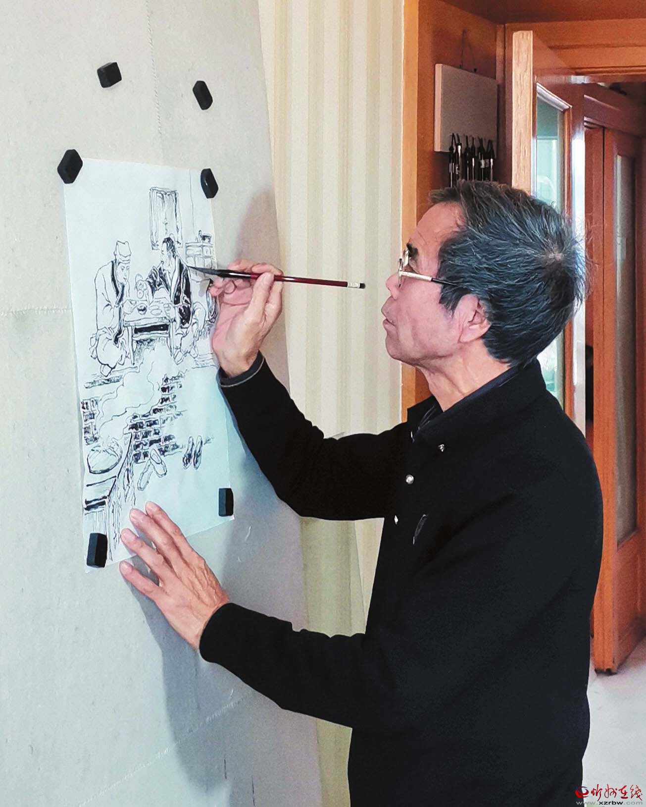 “夢圓畫室”的主理人叫艾吉虎,正如他的視頻號名字一樣,繪畫是他人生的最大愛好和情感寄托。早些年,艾吉虎曾利用繪畫專長從事過玻璃雕畫,隨著玻璃雕畫在裝修行業的沒落,艾吉虎轉戰其他行業,但兜兜轉轉離不開他的繪畫愛好。在原平市民俗文化研究會當美編期間,艾吉虎開始嘗試“小人書”的繪畫創作,沒承想,幾個插圖畫出來,得到許多人的熱烈追捧,這激發了他繼續創作的熱情。