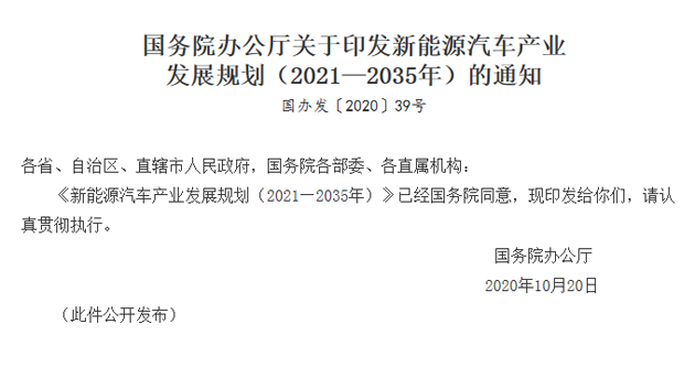 落實新能源汽車相關稅收優惠政策,優化分類交通管理及金融服務等措施。推動充換電、加氫等基礎設施科學布局、加快建設,對作為公共設施的充電樁建設給予財政支持。破除地方保護,建立統一開放公平市場體系。鼓勵地方政府加大對公共服務、共享出行等領域車輛運營的支持力度,給予新能源汽車停車、充電等優惠政策。2021年起,國家生態文明試驗區、大氣污染防治重點區域的公共領域新增或更新公交、出租、物流配送等車輛中新能源汽車比例不低于80%。制定將新能源汽車研發投入納入國有企業考核體系的具體辦法。加快完善適應智能網聯汽車發展要求的道路交通、事故責任、數據使用等政策法規。加快推動動力電池回收利用立法。
