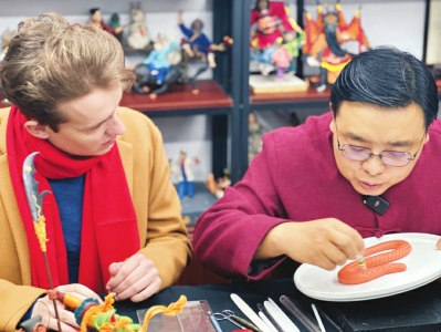 中國年的味道離不開非遺的加持,龍年春節,新鮮有趣的非遺故事讓更多外國人喜歡上非遺大省山西。春節期間,山西衛視融媒體推出“全世界愛過中國年”特別策劃,邀請7位來自世界各地的“非遺體驗官”到山西拜師學藝體驗年俗,在山西多樣的非遺年俗里“遺”起過龍年。圍著大紅圍巾的英國小伙Rees跟著省級非遺傳承人衛興安學習浮山面塑,聽說面塑是面做的,拿起就要咬一口,可愛又好笑;屬龍的南非姑娘陳諾第一次了解本命年,并獲得絳州木版年畫省級非遺傳承人吳百鎖贈與的新年禮物——拓印“龍”年畫;以“過年期間吃遍山西美食”為目標的巴基斯坦女孩代妮婭在太原工藝美術大師孟艷萍指導下一氣呵成完成糖畫制作,不愧是個“小吃貨”……7位“非遺體驗官”紛紛表白對山西非遺的熱愛,還有什么比外國人自己的親身經歷更有說服力、感染力呢?山西衛視該節目制作團隊相關負責人楊雅菲說:“我們希望通過外國人的視角,為世界送上一場熱鬧喜慶的中國非遺文化盛宴。”